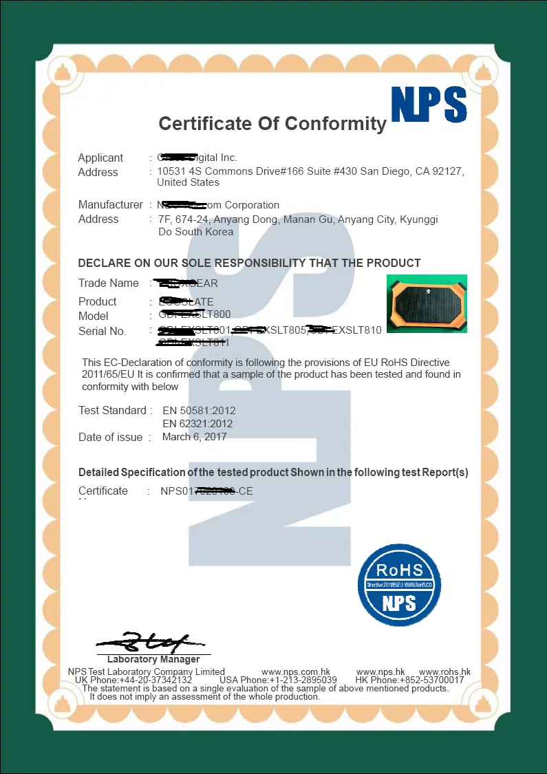 - 证书颁发 符合RoHS标准,可以颁发RoHS证书
