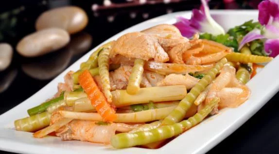 - 主要食材 腊鸡腿、豆皮、雷笋笋尖(熟)