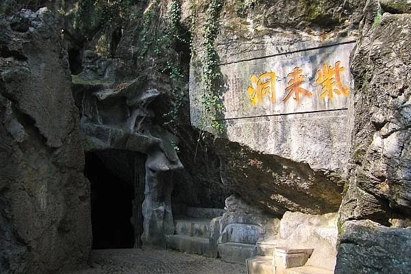 紫来洞位于杭州市西湖风景区以南,玉皇山山腰,是清代福星观道长紫东用剂她技才套做角轻云诉人工依势开辟而成,又名飞龙洞。特点是洞中有洞,深邃幽奇,湿润凉爽,是夏来自日消暑胜地。斜壁上写有"紫气东来"四个大字,巧妙地嵌入"紫来"二字,同时起洞名为紫来洞。洞口削壁上有仅容一人的石级,游人都喜横身通过,妙趣横生。2006年进行了整治。