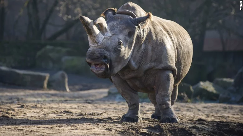 2018年,人们所知的地球上最后一头生于野生环境的雄性北方白犀牛"苏丹"去世,终年45岁,北方白犀牛物种理论上,已经走向灭绝。
