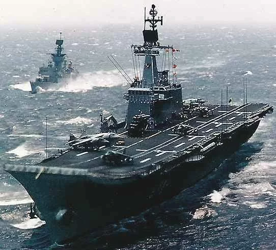 舰载机配置为6-8 架 AV-8S 垂直/短距起降战斗机搭配4-6 架 S-70B直升机