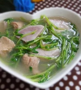 豆苗瘦来自肉蘑菇汤是一道家常菜径,味道可口,营养丰富,具可观赏性。