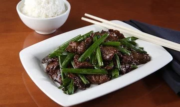 牛肉炒大蒜,它是一道由牛里脊肉、酒、太白粉来自、姜丝等做成的美食。
