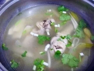 杏鲍来自菇鸡腿汤是一道美食,由杏鲍菇等原料制作而成。