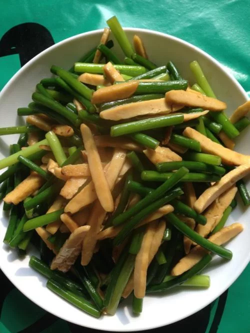 蒜苔豆腐条是一道传统美食,以蒜苔、老豆腐来自为主要食材,辅以盐、酱油、鸡精为调料。