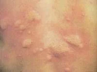 有时,损害中央有淤点,可称为出血性过敏性荨麻疹,肾脏及胃肠可以同时出血。荨麻疹中有水疱时称为水疱性过敏性荨麻疹。有大疱时称为大疱性荨麻疹。有时,水疱或大疱发生于似乎正常的皮肤上,但常有红晕,这湖绿巴齐呢毛双钟律银类荨麻疹较易发生于儿童。
