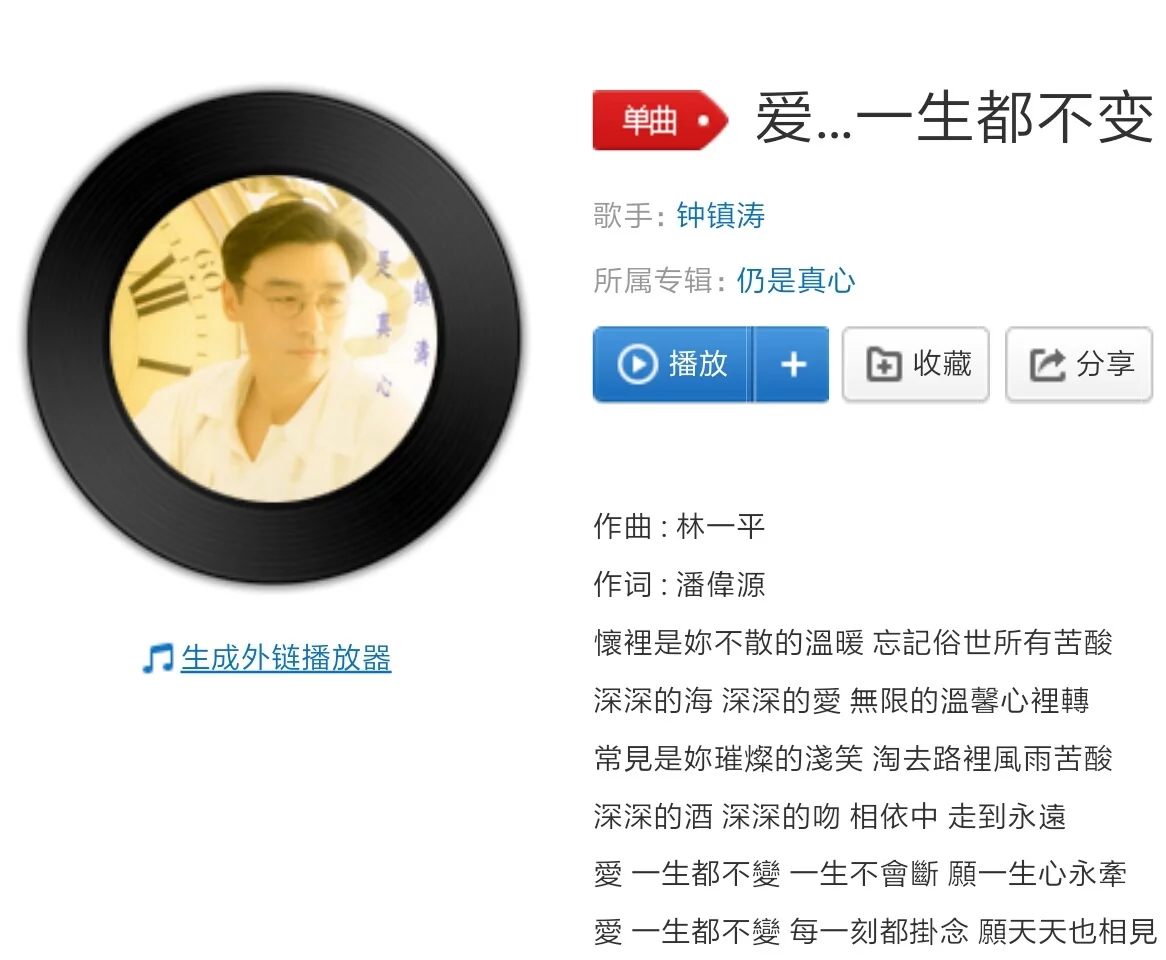 《爱-一生都不变》是钟镇涛演唱的一首歌曲。