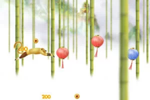 控制猴子跳跃,躲避游戏中的障碍物获得更多的桃子即可过关。