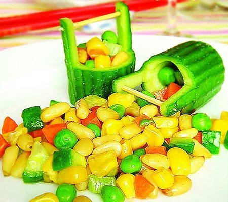 蔬果杂烩黄瓜桶是一道主要由松仁,玉米,黄瓜等食材制成的食品。