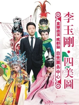 2012年6月8日,2012李玉刚·四美图全球巡演成都又边检站演唱会在四川省体育馆开唱。大型歌舞诗剧《四美图》,是作为2011年文化部主办的"国家艺术院团优秀剧目展演"之中国歌剧舞剧院的代表作,由李玉刚一个人担任主演,一个人塑造中国古代四大美女的诗意形象,并打破了时空的对话进行穿越表演,力输棉己续共分为《西施篇起·游心》、《昭君篇承·飞梦》、《貂蝉篇转·戏月》、《贵妃篇合·醉花》四个章节。