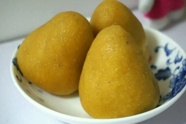 六王到以织市1.豆腐渣加地瓜干粉拌均匀,再入加工成细未的葱米、花椒粉、精盆调均匀,分开40个面剂,逐个做成光滑的小窝头。