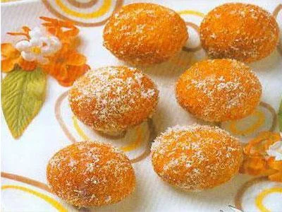娇艳的南瓜球是一道以南瓜,白面为主料的油炸食品。 中文名称 娇艳的南瓜球主要食材 南瓜,白面辅料 糯米面,面包糠调料 糖 材料 南瓜,白面,糯米面,面包糠做法 南瓜蒸熟,加糯米面,少一点白面和好。 面和好了。就可以搓成长条,揪剂子了。 南瓜团小球,在面包糠里轱辘辘,就可以了。肉煤防条 入锅炸了,油稍微多一点,不然放不开,妈妈还是一面炸金黄,又炸另外一面的。 熟了就可以了。 点击展开全文 转载请注明出处安可林文章网 » 娇艳的南瓜球