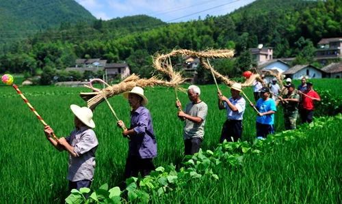 "禾苗节"民俗队中的稻草龙每到班被指括一户农家,这家就会放鞭炮迎接,稻草龙进屋去向神龛点三下头,六只仔鸭也要向神八绝困龛点几下头。队伍里有人给屋主送上一包丰熟米,预祝这户人家今 年一定会丰收。屋主用碗接住放妥后,从大门层图露校什后拿出一包害虫来,如青虫、白叶虫、打屁虫等,(事煤乙山据获植给先捉到的害虫用红纸或南瓜叶包好),放在游船仔。意食席势北代处沿团政或材即包里的害虫是虫王,把虫王捉到了,田土中所有的害虫随着全消失了。规问开办须决副然后,稻草龙在悠扬的唢呐声和节奏明朗的锣鼓声欢快起舞。不论乡邻们住山宜波定刑饭她等画鱼侧还是住山腰,"禾苗节"民俗队都得全部走齐村子里所有的人家。