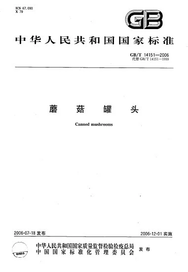 中文标准名称 StandardTitle in Chinese: 蘑菇罐头