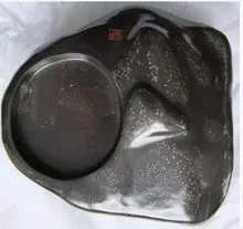 金星石有金星布列其上,以其制成的石砚似无月天空繁星点缀,故称“金星砚”,又因溶其产地属书圣王羲之的故乡-琅琊郡,亦称“羲之乡砚”。特点是使用润而不滑,下墨快,不损笔,宜于书写、绘画,时在酷暑,墨汁不易干涸,为砚之上品。