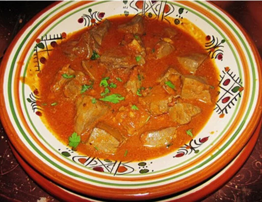 番茄牛肝汤原料:番茄、土豆各200克,牛肝、牛肉各100克、精盐、黄酒、酱油、淀粉、白糖、姜片各适量。