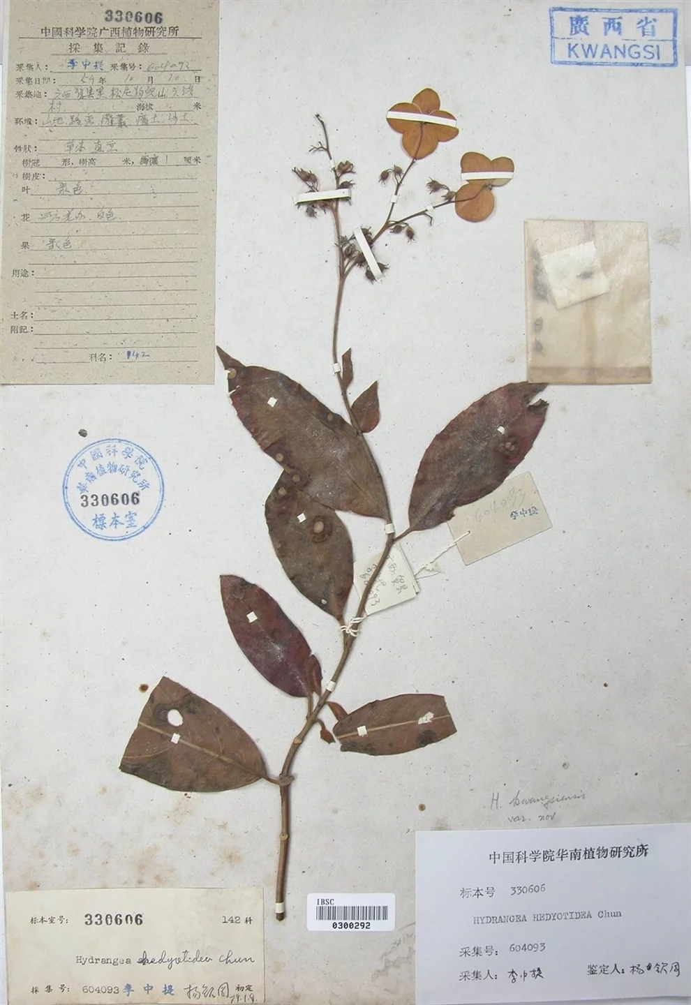 - 拉丁学名 Hydrangea kwangsiensis Hu var. hedyotidea (Chun) C
