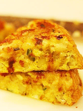 土豆泥蛋饼是一道菜品,主料是小土豆,香葱,鸡蛋。