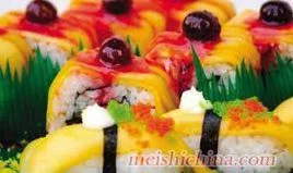 日初元寿司来自是一道美味佳肴,主料是挪威三文鱼、蟹360百科籽、紫菜等。