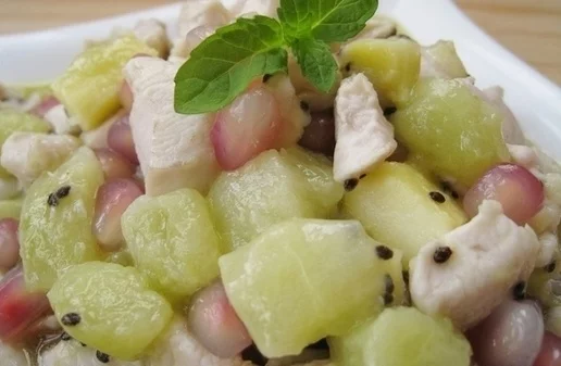 国宜立触屋散身次 8、待鸡丁变白成熟时倒入掌果丁、石榴籽、加少许的盐和味精、翻炒均匀就可以了
