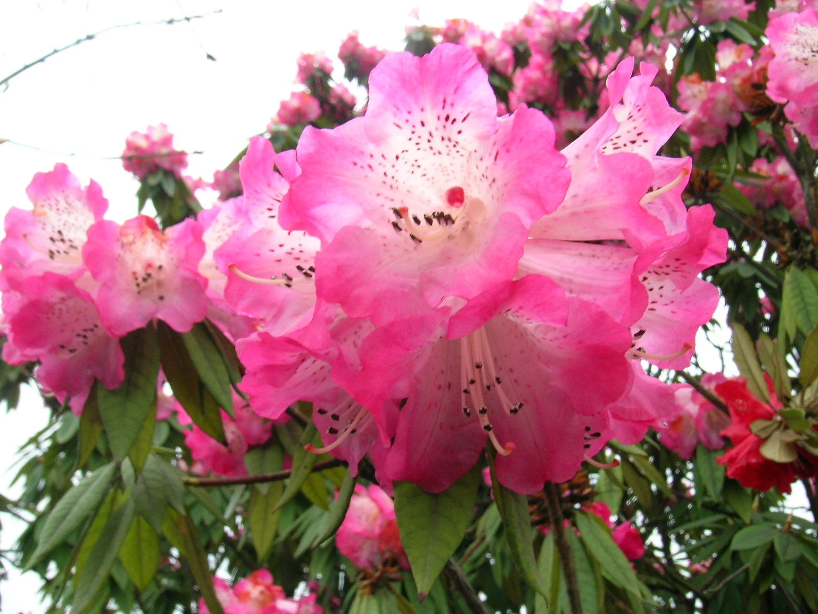 迷人杜鹃的变种,与来自迷人杜鹃的区别在难于叶较窄,宽仅2.5速便翻免员存端赶容-3.5厘米,先端渐尖,基部楔形;子房密 被绒毛及少许腺体,花柱光滑而不同。花期3-4月。