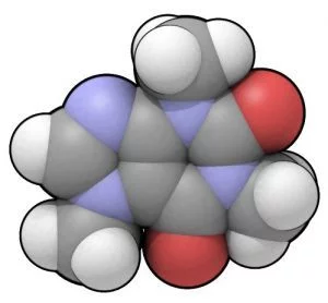 副黄嘌呤(1,7-二甲基黄嘌呤,84%)-能够加速脂解,导致血浆中的甘油及自由脂肪酸的含量增加。 可可碱(12%)-能够扩张血管,增加尿量。可可碱也是可可豆中主要的生物碱,也存在于巧克力中。茶碱(4%)-舒缓支气管平滑肌,被用作治疗哮喘。治疗所用的剂量远远大于由咖啡因代谢所产生的剂量。 这些化合物进一步代谢,最终通过尿液排泄出体外。