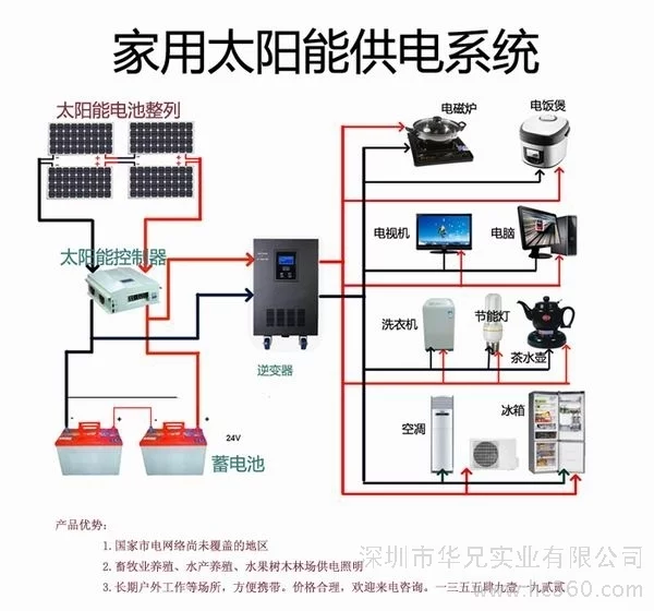 太阳能发电系统主要包括:太阳能电池组件(阵列)、控制器、蓄电池、逆变器、用户即照明负载等组成。其中,太阳能电池组件和蓄电池为电源系统,控制器和逆变器为控制保护系统,负载为系统终端。