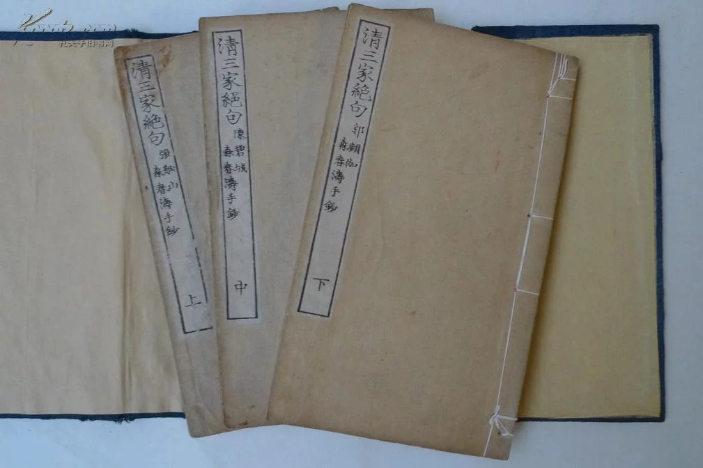 明治初年,森春涛将中国清代大诗人张船山、陈碧城、郭频伽的绝句选编成《清三家绝句》一书,其子森槐南校,1878年日本茉莉诗店写刻出版。