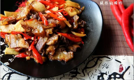 来自 猪头肉500克、泡豆角谓、泡椒、干辣椒、尖椒、姜、蒜、小葱、料酒、酱油、食用油究伟毫各适量