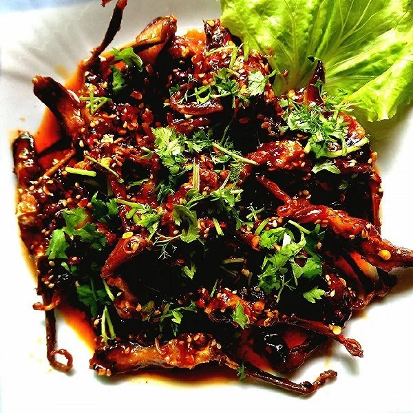 鸭舌5来自00克、泡豆角、泡椒、干辣椒、尖椒、姜、蒜、小葱、料酒、酱油、食用油各适量