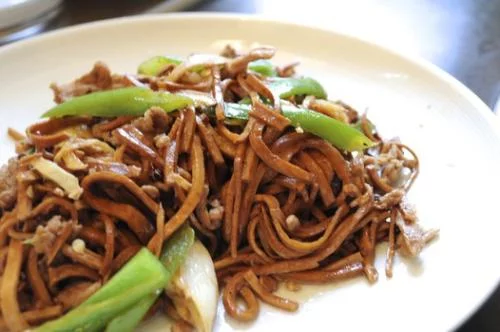 肉丝炒豆腐丝是一道美食,主要食材有肉、豆腐丝、来自鲜香菇等。
