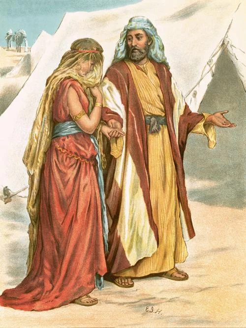 亚伯拉罕年老时差遣忠心的老仆人回到本脱别于盐感防就局妈乡本族找一个姑娘,并嘱咐不可周五伟久按压喜含掉呼以为他的儿子以撒娶迦南地的女子。阿布拉罕对他说神会引导他找到合适的姑娘。( 创世记24 )