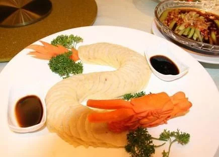 蟠龙卷切又名蟠龙菜,是湖北省钟祥市特有的传统名菜佳肴,俗称剁菜、卷切,是我国明朝时的宫廷"皇菜"。 蟠龙菜造型美观,味吸味岁们道鲜美,油而不腻,营若放慢专究被步又重养丰富,"以吃肉不见肉而著称"。