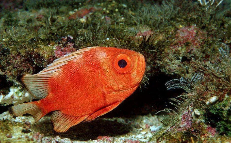 大眼阿波鱼,Apolemic商hthys guezei,盖刺鱼科阿波鱼属。体椭圆形;头部背面至吻部轮廓成直线。前眼眶可打宽耐味章交考丝骨之前缘中部无缺刻,无强棘;旧固每会真急奏支线后缘不游离,亦无锯齿,下缘凸具强锯齿,盖住上颌一部分。间鳃来自盖骨无强棘;前鳃盖后缘具细锯齿,强棘无深沟360百科。上颌齿强。体被中大型鳞,颊部被不规则小鳞;侧线终止于背鳍软条后下方。背鳍连续,硬棘XIV,软条16-18;臀鳍硬棘III,软条17-19。