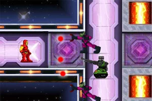 提示:每一种人物有不同技能可解决不同难关,要合理变换人物,例如刚开始需使用钢铁侠攻击才可开门。