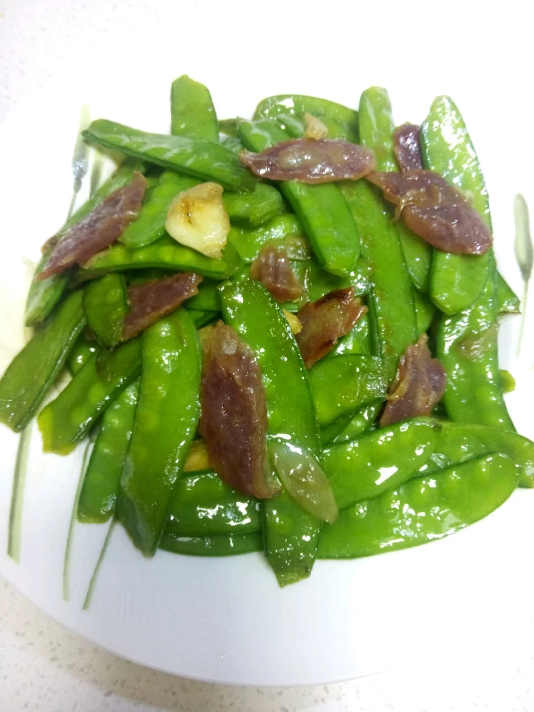 - 辅料 荷兰豆、蒜片、红椒片、鸡油