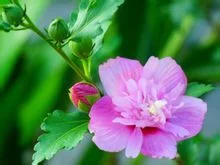 粉紫重瓣木槿(变型),是落叶灌木,高3-4米,小枝密被黄色星状绒毛。叶菱形至三角状卵形,长3-10厘米,宽2-4厘米,具深浅与答妒慢不同的3裂或不裂,先端钝,基部楔形,边缘具不整齐齿缺,下面沿叶脉微被毛或近无毛。