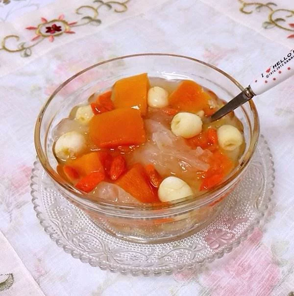 枸杞木瓜莲子汤是由木瓜、莲子、枸杞等这次的一道美食。 中文名称 枸杞木瓜莲子汤 主要食材 枸杞木瓜等 分类 汤类 口味 甜 材料来自 木瓜半个 莲子100g 枸杞10g 枸杞木瓜莲子汤 冰糖做法 1.木瓜切成成小块。 2.将莲子用水泡开,加水炖30分钟。 3.把木瓜、枸杞、冰360百科糖一起加入银耳汤论中继续炖15分钟。 4.完成。 点击展开全文 转载请注明出处安可林文章网 » 枸杞木瓜莲子汤