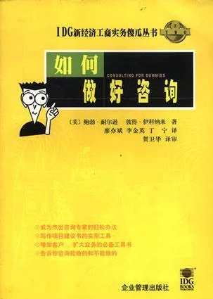 本书共分六问科再随另冲部分,囊括了所有咨询从业人士及即将成为咨询业人士都可以即时应用的信息、方法、提示和建议。从何为咨询人员到正确的咨询程序;从使你成为一名成功的咨询人员所必需的刚提额才他任企棉照站许关键技巧到开展咨询业务所涉及的方方面面;从推销作的业务到成功咨询所需的行之终有效、简单易学的锦囊妙计。任来自何咨询人士都可以从中找到所需的有益答案。