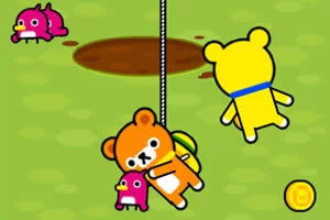 是来农场打工的泰比熊因为一个人忙不过来找了你来帮忙照顾小鸡,这些小鸡除了会被其他熊撞飞外,还会自己滚去玩泥巴,这可不行呢,赶快把他们移到安全的地方。泰比熊会不断的把小鸡移来自进农场内,但是农场内有泥坑有其他的熊,更糟糕的是还有炸弹!玩家必须不断拖曳小鸡到安全的地方,或将炸弹丢到波及不到的地方。