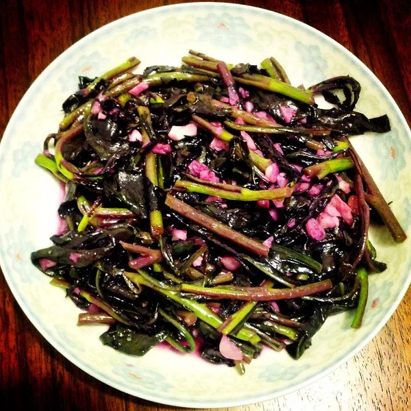 素炒紫背天葵是一道菜品,主料有紫背天葵、块沙肥肉。