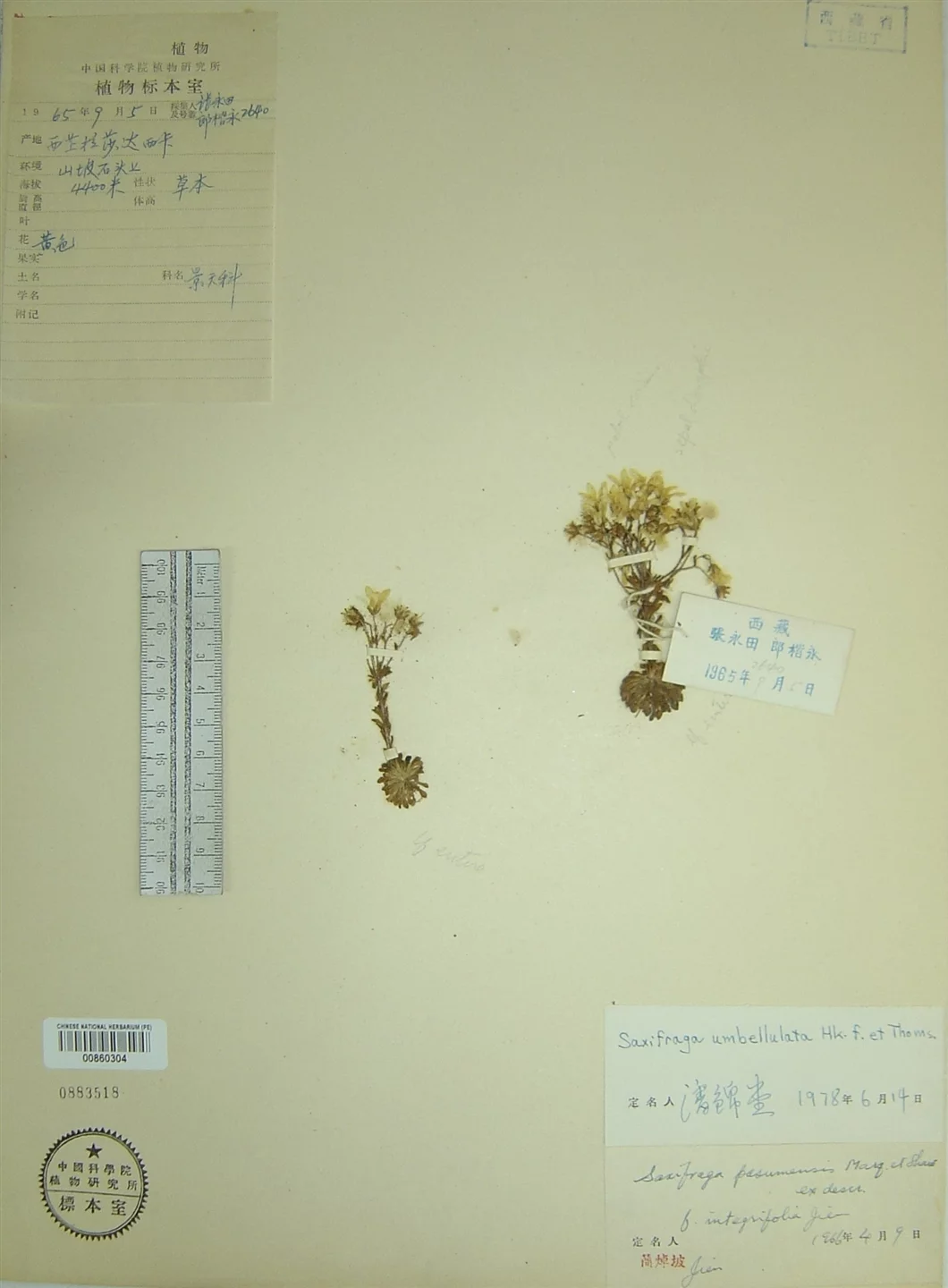 - 拉丁学名 Saxifraga umbellulata Hook. f. et Thoms.海拔