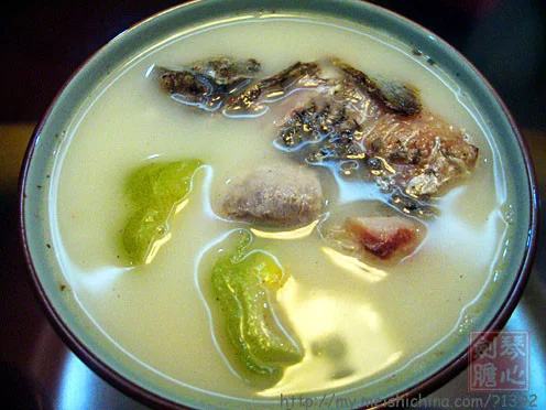 来自 苦瓜1条(约250克) 鲫鱼1条(约400克) 草菇100克 水6碗 姜3片