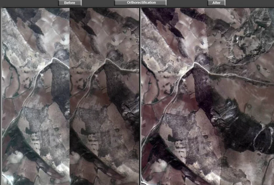 所谓正射影像,指改正了因地形起伏和传感器误差而引起的像点位移的影像。数字正射影像不仅精度高,信息丰富,直观真实,而且数据结构简单,生产周期短,能很好的满足社会各行业的需要。在地势起伏较大的地方,使用正射校正来解决地势起伏较大引起的误差,做正射校正需要用DEM.