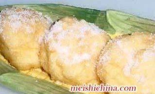 6、用温油把小"雪球"炸至表面金黄挺身即可。