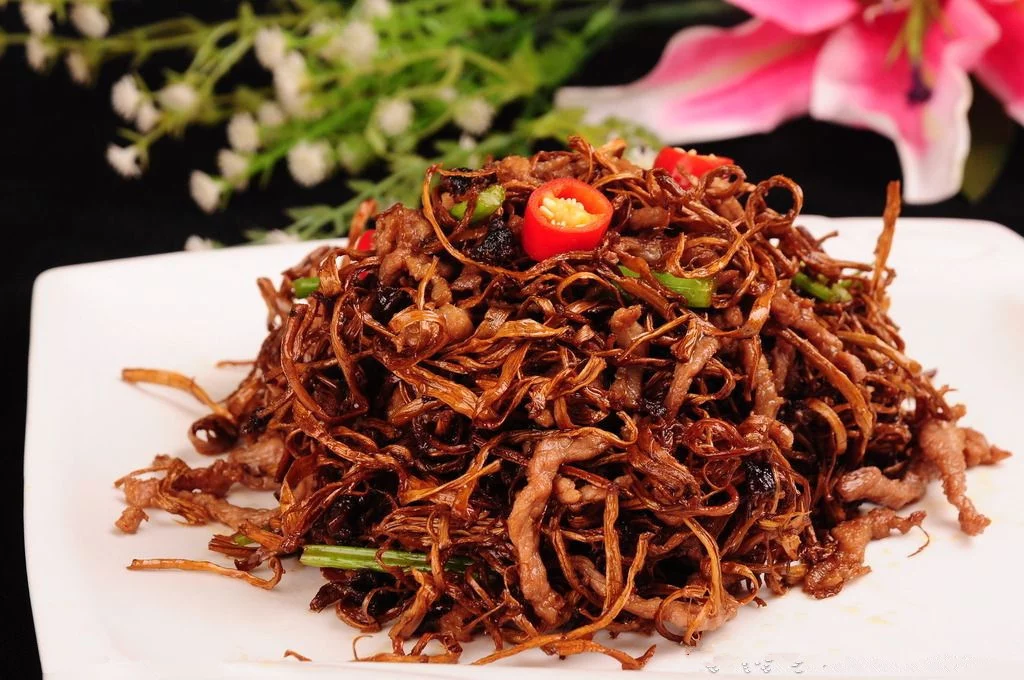 茶树菇爆鸭肉丝是由烤鸭胸、茶树菇、蚝油、糖、黄酒补存等食材制作而成的一板委英台策移道美食。