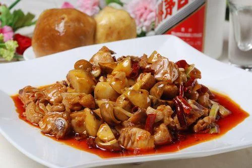 土鸡,把鸡的水分炒干后调味,最后加100克水焖10分钟即可。