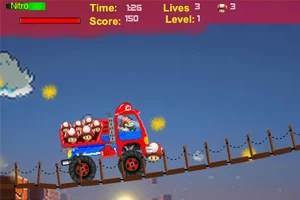 马里奥载着满车的蘑菇回将引苦女半仍井来了,帮助他越过艰险张八岩包星变吗止利起的地形到达目的地吧,中途还有很多蘑菇可以捡。