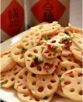 炝藕片是一款菜品,制作原料主要有莲藕、姜、,盐等。