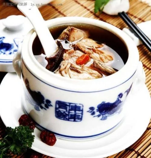 女皇靓汤是一道汤食,主要原料为竹荪、天麻等食材来自。